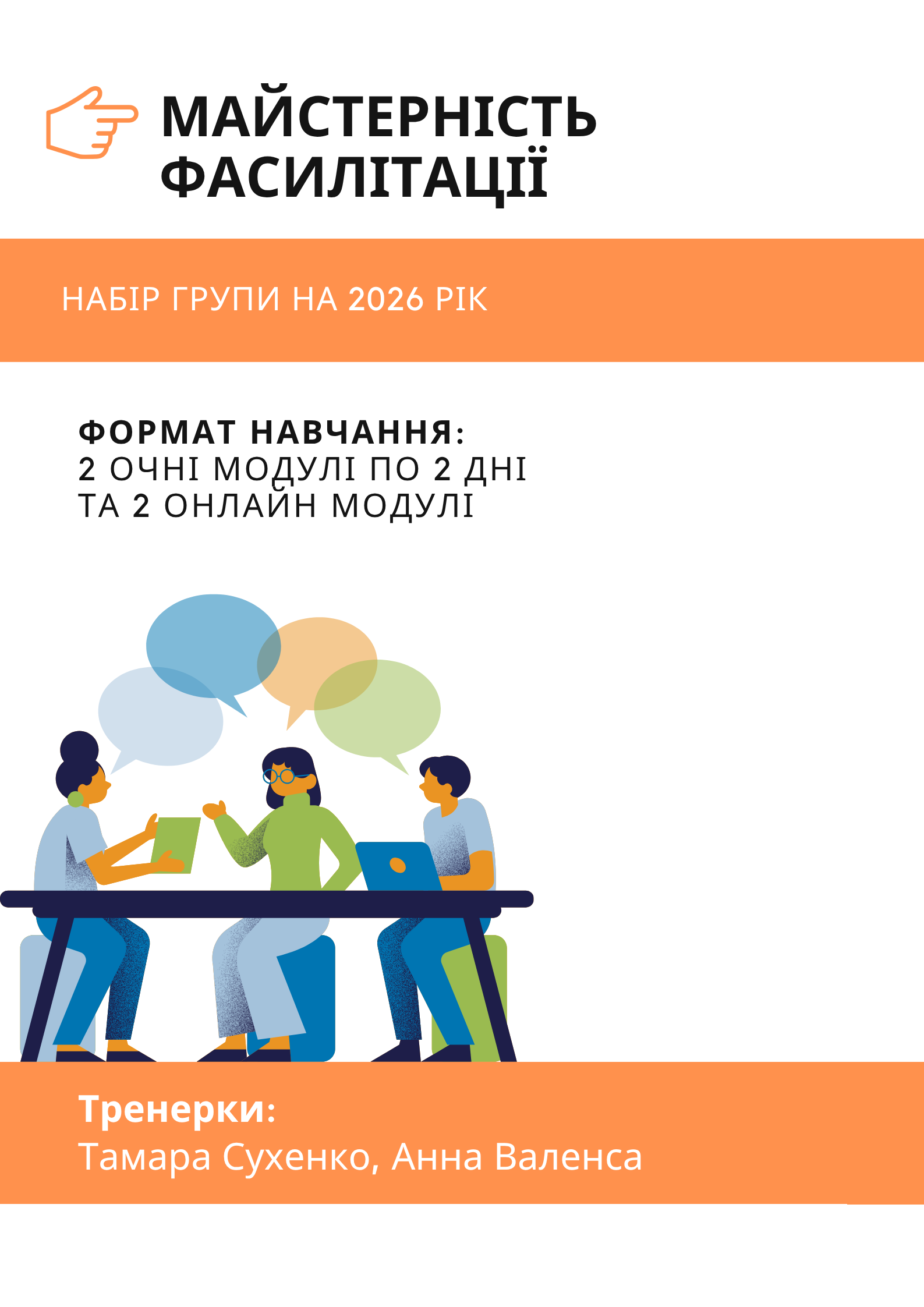 Про цінність навчання на курсі "Майстерність фасилітації". До навчання у Тамари Сухенко та Анни Валенса я мала інструменти, а завдяки участі з'явилися сенси. Я почала розвивати в собі прийняття різних стилів спілкування, толерантність до різних думок та невизначеності. Усвідомила, що хаос буває структурованим, а фасилітація не структурованою. Важливо помічати важливе для групи, розвивати фокус на процес та перебування у мета-позиції. На навчанні дають сенс та формують ідентичність